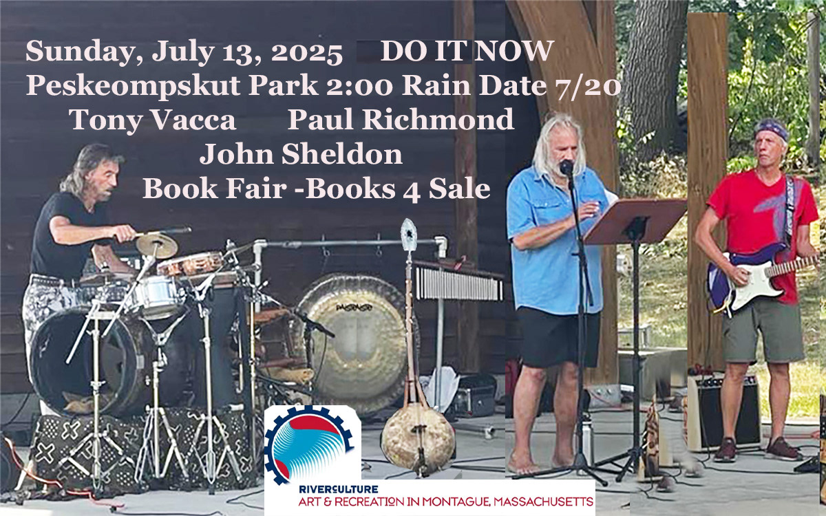 "Do It Now" is Paul Richmond Beat Poet Laureate, Tony Vacca innovative American percussionist with Jazz and World Music, John Sheldon “One of the great guitarists of our time.” Do it Now, combines poetry, story-telling, political commentary and musical improvisation to share a vision of hope for our planet.